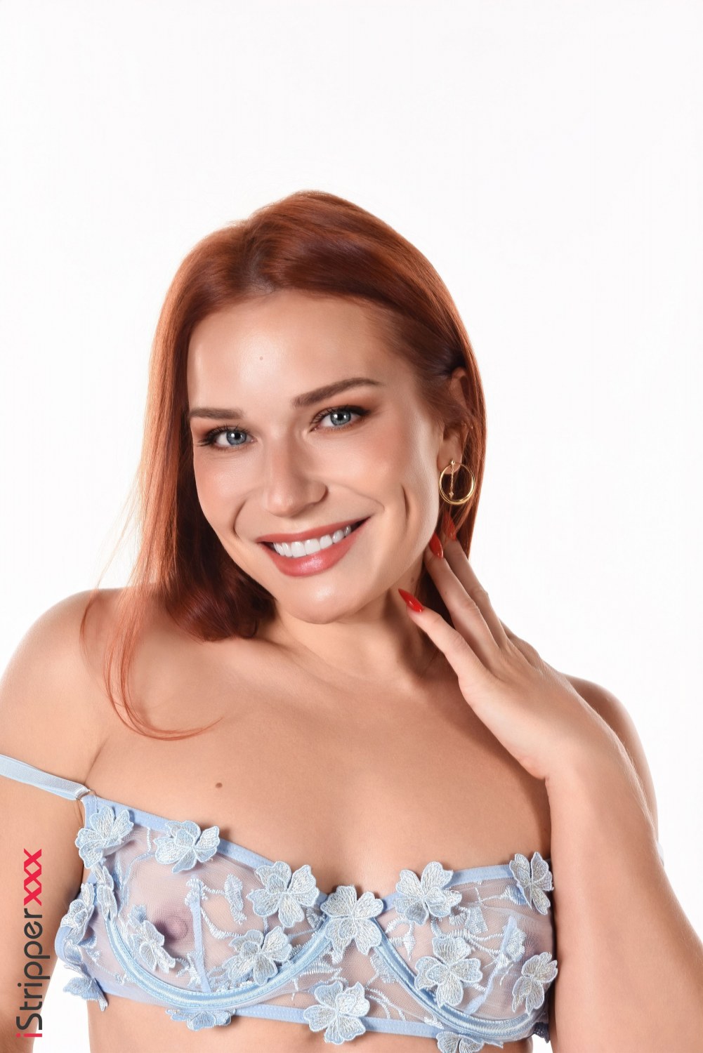 Sexy Redhead Babe Clemence Audiard Takes Off Her Cute Blue Lingerie